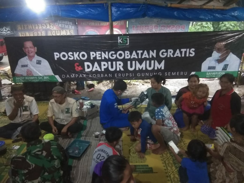 EKSISNEWS.COM, Lumajang – Posko Kemanusiaan Komunitas Sedekah Jum’at (KSJ) Korban Erupsi Gunung Semeru yang berada di Jalan Panglima Sudirman Depan Pom Bensin Pertamina Desa Sumber Wuluh Kecamatan Candipuro Kab Lumajang Jawa Timur mulai melakukan persiapan cek kesehatan gratis dan pendistribusian bahan makanan serta sembako, langsung door to door ketempat – tempat penampungan disekitar Desa Sunber Wuluh.