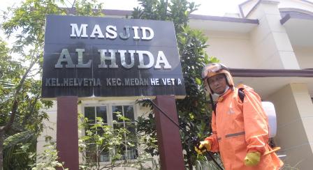 Aksi penyemprotan disinfektan juga dilakukan Rajuddin di Masjid Alhuda Perumnas Helvetia persis di dekat kantor Camat Helvetia serta Masjid Umar Bin Khattab Jl Kalpataru Helvetia Timur.