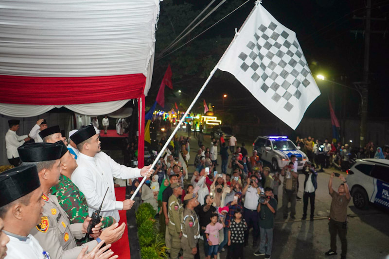 EKSISNEWS.COM, Medan – Dengan mengucapkan bismillahirrahmanirrahim dan diiringi lantunan suara takbir, Wali Kota Medan Bobby Nasution melepas pawai kenderaan hias dalam rangka memeriahkan malam takbiran untuk menyambut Hari Raya Idul Fitri 1444 H di Jalan Kapten Rahmad Budín, Kelurahan Rengas Pulau, Kecamatan Medan Marelan, Jumat (22/4/2023).