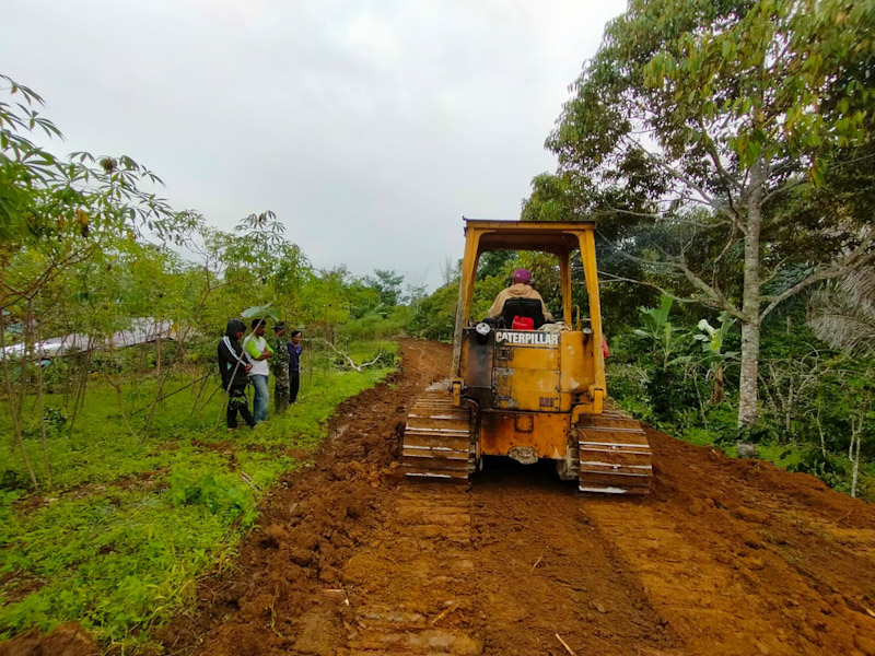 Amatan awak media alat berat dikomandoi personel Satgas terus bergerak membelah perbukitan dan menyusuri hutan belum dijamah manusia .Meskipun harus menantang dengan medan ekstrem pekerjaan fisik tersebut tetap dilanjutkan agar tuntas tepat waktu.