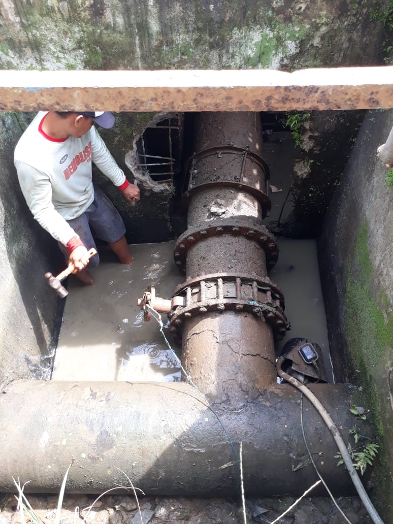 “Selama pelaksanaan pekerjaan, IPA TLM turun produksi dari 500 l/d menjadi 300 l/d sehingga terjadi penururnan debit dan tekanan air di beberapa wilayah pelayanan,” jelas Jumirin.