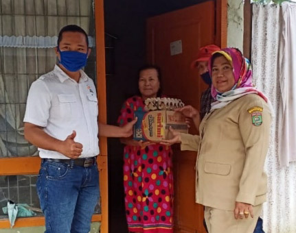 Lurah Bunut Dampingi Manager BSP Rubber Factory Menyalurkan Bantuan