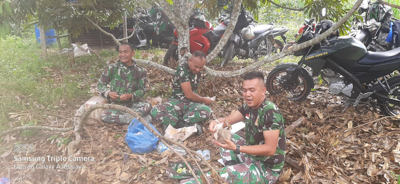 Buktinya,setiap usai mengerjakan sasaran fisik atau lagi Isoma personel Satgas selalu makan bareng bersama warga Desa Sungai Raya,Kecamatan Siempat Nempu,Kabupaten Dairi ,Sumut.