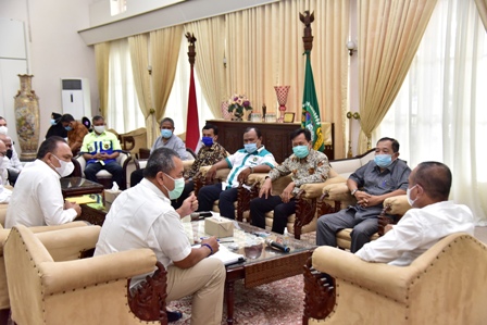 Hal itu disampaikan Gubernur saat menerima audiensi dari Konfederasi Serikat Pekerja Seluruh Indonesia (K-SPSI) Sumut, pimpinan Conrad P Nainggolan beserta serikat pekerja lainnya, di Rumah Dinas Gubernur Jalan Jenderal Sudirman Nomor 41 Medan, Rabu (21/4/2021). Turut mendampingi, Kepala Dinas Komunikasi dan Informatika (Kominfo) Sumut Irman Oemar, Kepala Dinas Tenaga Kerja Sumut Baharuddin Siagian, serta Deputi Direktur Wilayah BPJS Ketenagakerjaan Sumbagut Panji Wibisana.