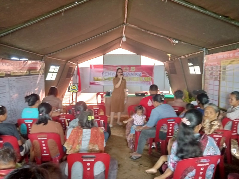 Kali ini melalui Program Non Fisik TMMD 118 Kodim 0206/Dairi menggelar Penyuluhan KB menggandeng pihak Dinkes Kab Dairi di Pos Kotis TMMD.