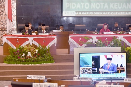 Jumat (16/8/2019) siang, Gubernur Sumut Edy Rahmayadi dan Wagub Musa Rajekshah juga menghadiri rapat paripurna DPRD Sumut, di gedung dewan setempat, dengan agenda mendengarkan penyampaian Nota Keuangan Tahun Anggaran 2020 oleh Presiden Republik Indonesia Joko Widodo yang disiarkan langsung dari Gedung DPR/MPR RI, Senayan, Jakarta.(ENC-2)