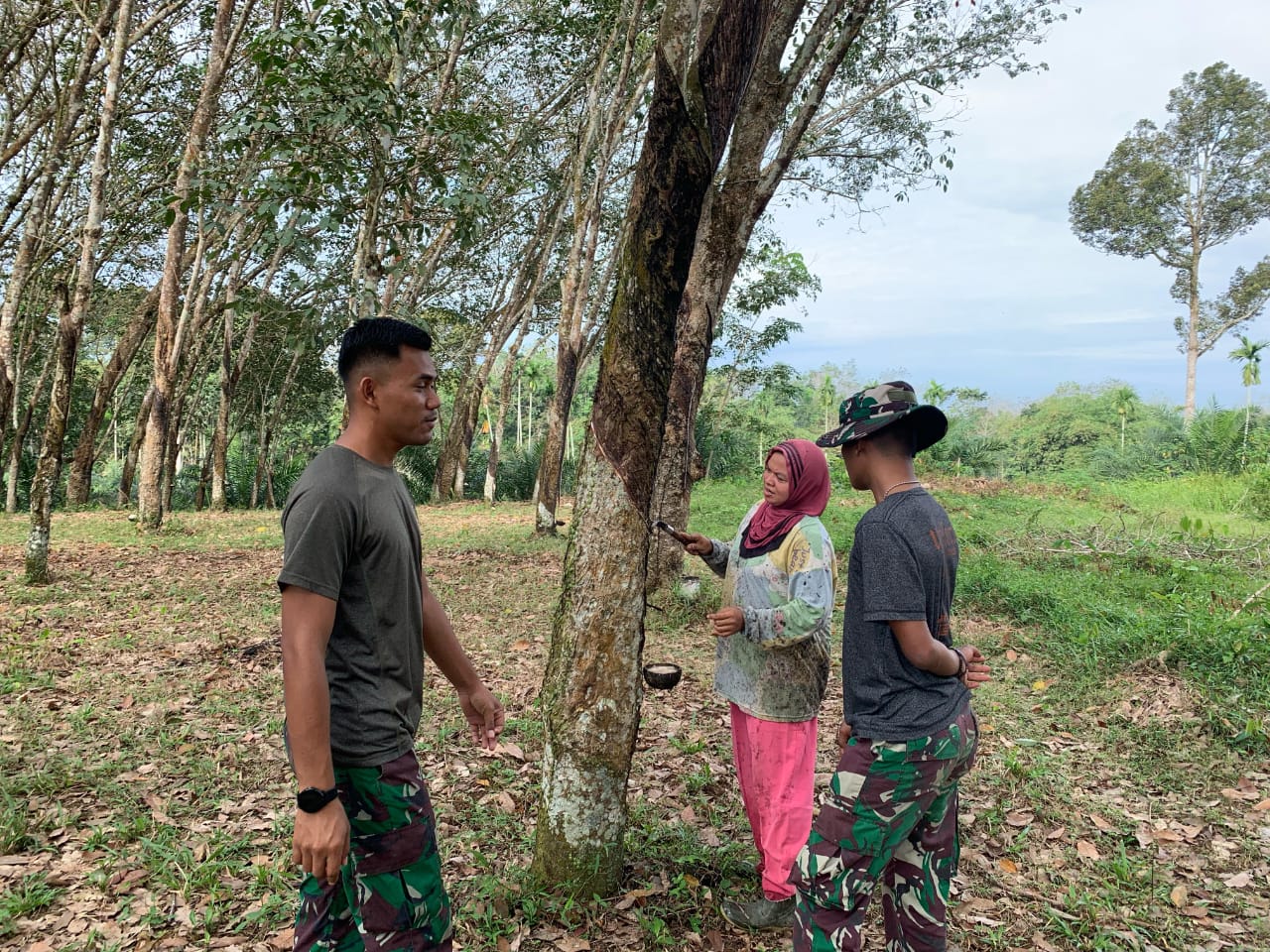 Meski Sibuk Kerjakan Program TMMD 123 Kodim 0203/Lkt,Pratu Nadra Bantu Bu Tuti Deres Getah Karet