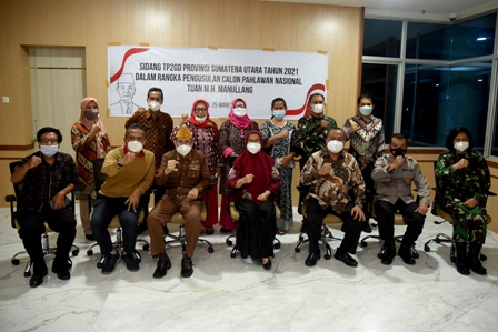Sekretaris Daerah Provinsi Sumatera Utara (Sekdaprovsu) R Sabrina, yang juga Ketua TP2GD Sumut langsung memimpin sidang pembahasan usulan calon Pahlawan Nasional yang dilaksanakan di Ruang Rapat Lantai 2, Kantor Gubernur Sumut, Jalan Pangeran Diponegoro Nomor 30 Medan, Kamis (25/3/2021) malam.