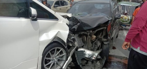 Mobil jenis Toyota Avanza dengan nomor polisi BK 1885 WS bertabrakan keras dengan mobil mewah Toyota Alphard.