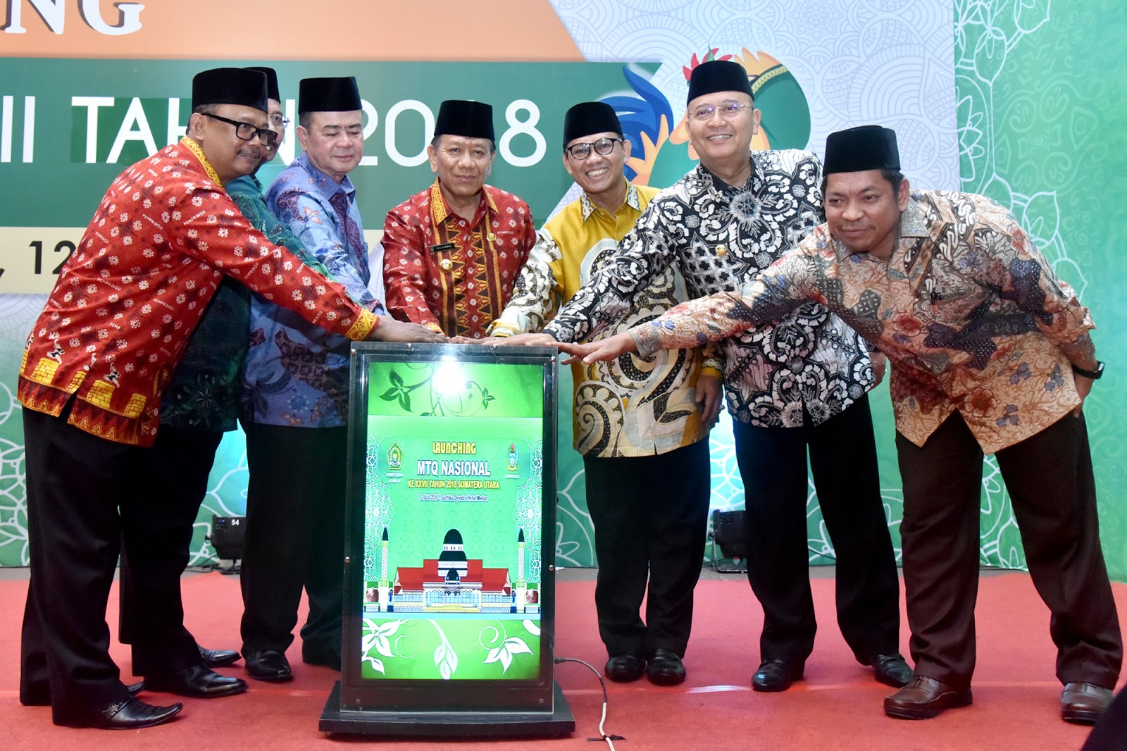 MEDAN, Eksisnews.com – Kegiatan Peluncuran Musabaqah Tilawatil Qur’an (MTQ) tingkat Nasional ke XXVII di Sumatera Utara (Sumut) 2018, ditandai penekanan tombol sirene oleh Penjabat Gubernur Sumut (Pj Gubsu) Drs Eko Subowo MBA bersama Dirjen Bimas Islam Kemenag Muhammadiyah Amin di Hotel Santika, Kamis (12/7). Seluruh masyarakat pun diminta mendukung acara berskala nasional di provinsi ini.