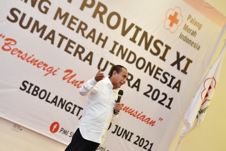EKSISNEWS.COM, Deliserdang – Gubernur Sumatera Utara, Edy Rahmayadi didampingi Wakil Gubernur (Wagub) Musa Rajekshah, menghadiri acara Musyawarah Provinsi (Musprov) XI Palang Merah Indonesia (PMI) Sumatera Utara (Sumut), di The Hill Hotel & Resort Sibolangit, Jalan Letjend Jamin Ginting Km 45,3, Kabupaten Deliserdang, Senin (28/6/2021).