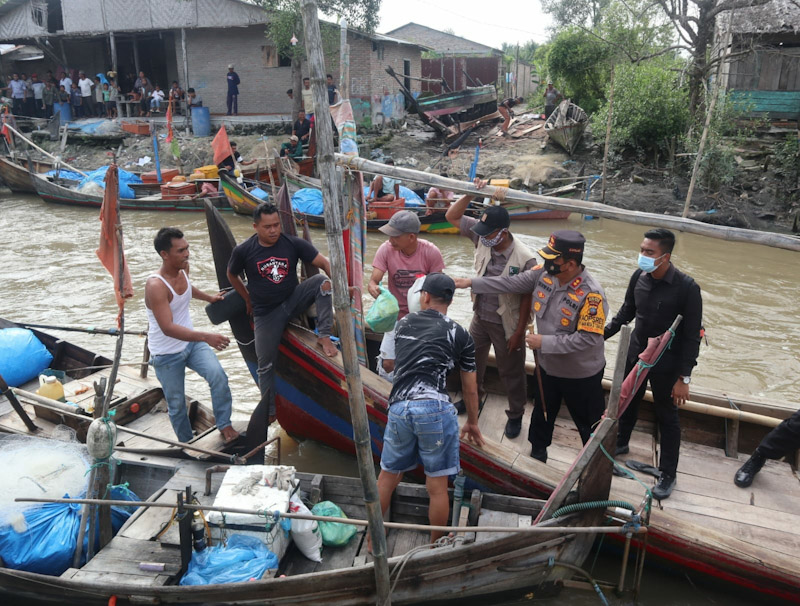 Kapolres Batubara AKBP Ikhwan Lubis SH.MH mendadak memiliki inisiatif ingin berbagi kepada masyarakat nelayan yang akan pergi melaut mencari kepiting dan ikan Pada Selasa sore (14/9/2021) dengan memberi bantuan sembako berupa beras per 5 kg, indomie satu dus, gula dan bubuk teh, kepada nelayan yang akan berangkat melaut, sebanyak 70 paket.