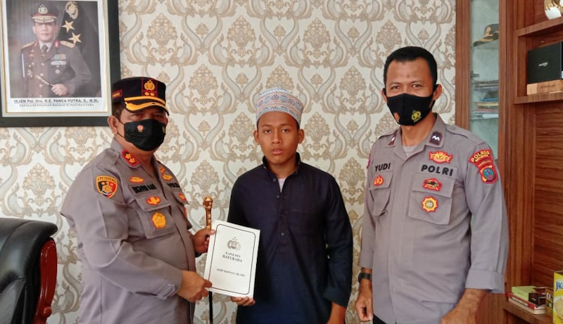 EKSISNEWS.COM, Batubara – Berbekal keinginkannya menambah ilmu ke pulau jawa, Hamdani remaja 21 tahun ini menguunjungi dan meminta restu kepada Kapolres Batubara AKBP Ikhwan Lubis SH.MH yang tak lain adalah Sang Pejuang Dhuafa, pada Jumat (2/7/2021) sore.