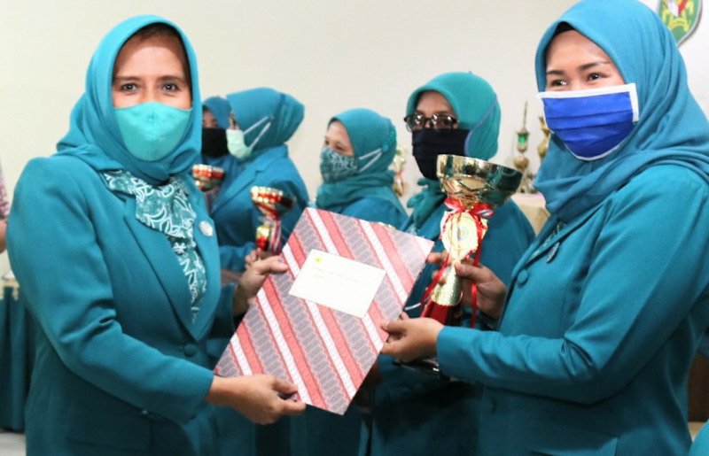 “Penyerahan hadiah pemenang lomba baru dapat kita laksanakan pada hari ini akibat pandemi Covid-19 yang terjadi. Saya mengucapkan selamat kepada seluruh pemenang lomba. Semoga prestasi yang diraih ini dapat memotivasi kegiatan-kegiatan PKK di wilayah kerja masing-masing,” kata Hj Nurul Khairani.