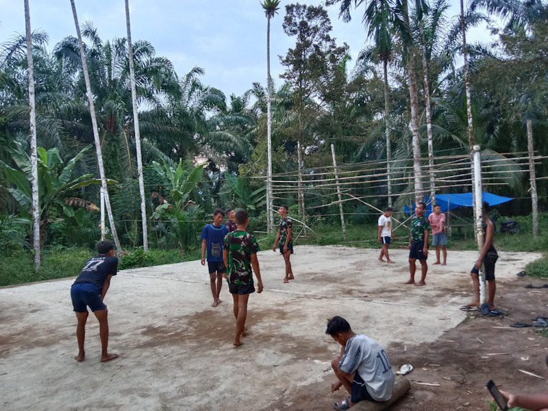Olahraga bermain Bola Voly bersama warga yang dilakukan personel Satgas selain menjalin kekompakan dan eratkan silaturahmi juga menciptakan Kemanunggalan TNI dan warga masyarakat.