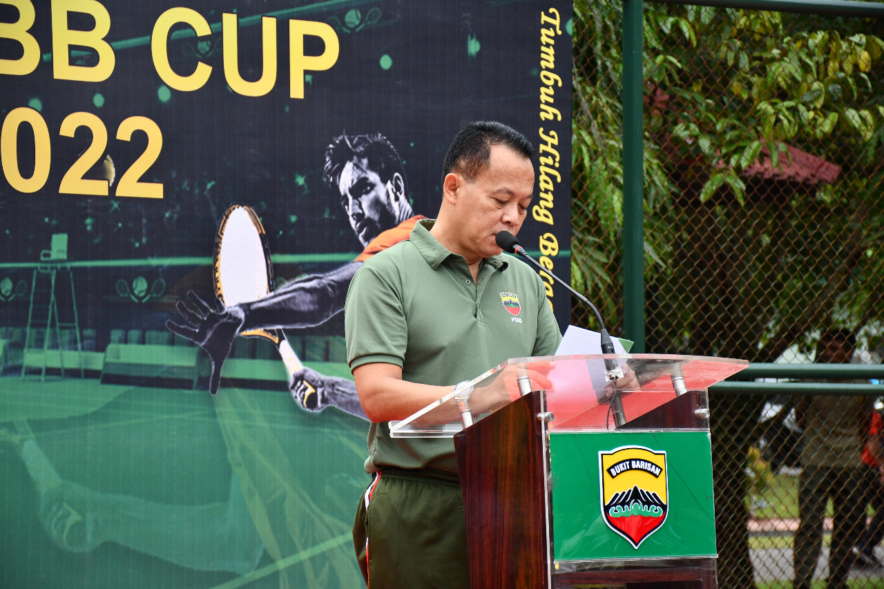 EKSISNEWS.COM, Medan – Open Turnamen Tennis Pangdam I/Bukit Barisan Cup Tahun 2022 resmi dibuka oleh Pangdam I/BB, Mayjen TNI Achmad Daniel Chardin, SE, MSi, diwakili Kasdam I/BB, Brigjen TNI Purwito Hadi Wardhono di Lapangan Tenis Makodam I/BB, Jln Gatot Subroto Km 7,5 Medan, Jumat (22/7/2022) pagi.