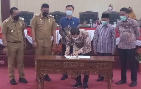 EKSISNEWS.COM, Medan – Rancangan Peraturan Daerah (Ranperda) tentang Perubahan Angggaran Pendapatan dan Belanja Daerah (P APBD) Kota Medan Tahun Anggaran (TA) 2021 disahkan bersama DPRD Kota Medan dan Pemko Medan, di ruang paripurna DPRD Kota Medan, Selasa (28/9/2021).