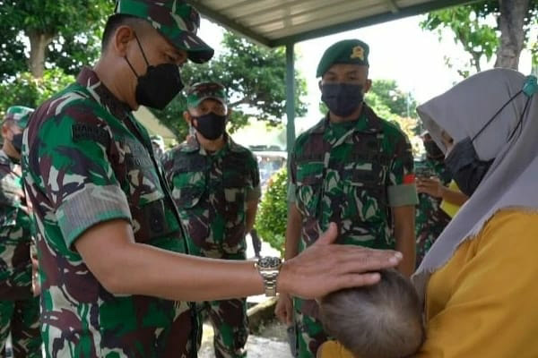 Disela-sela kunjungannya Pangdam juga mengunjungi dan memberikan perhatian terhadap anak prajurit yang menderita Hidrosefalus. (ENC-Pendam IX/Udy)