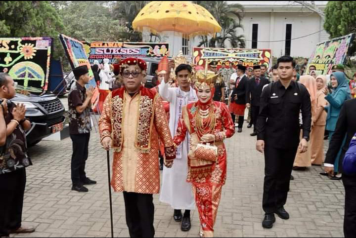 Bupati Madina HM Jafar Sukhairi Nasution dan Ketua TP PKK Madina Eli Mahrani mengenakan busana adat Natal, wilayah pantai barat Madina. Sementara Wakil Bupati Madina Atika Azmi Utammi Nasution mengenakan busana ada pengantin Mandailing seperti bulang lengkap dengan aksesorisnya.