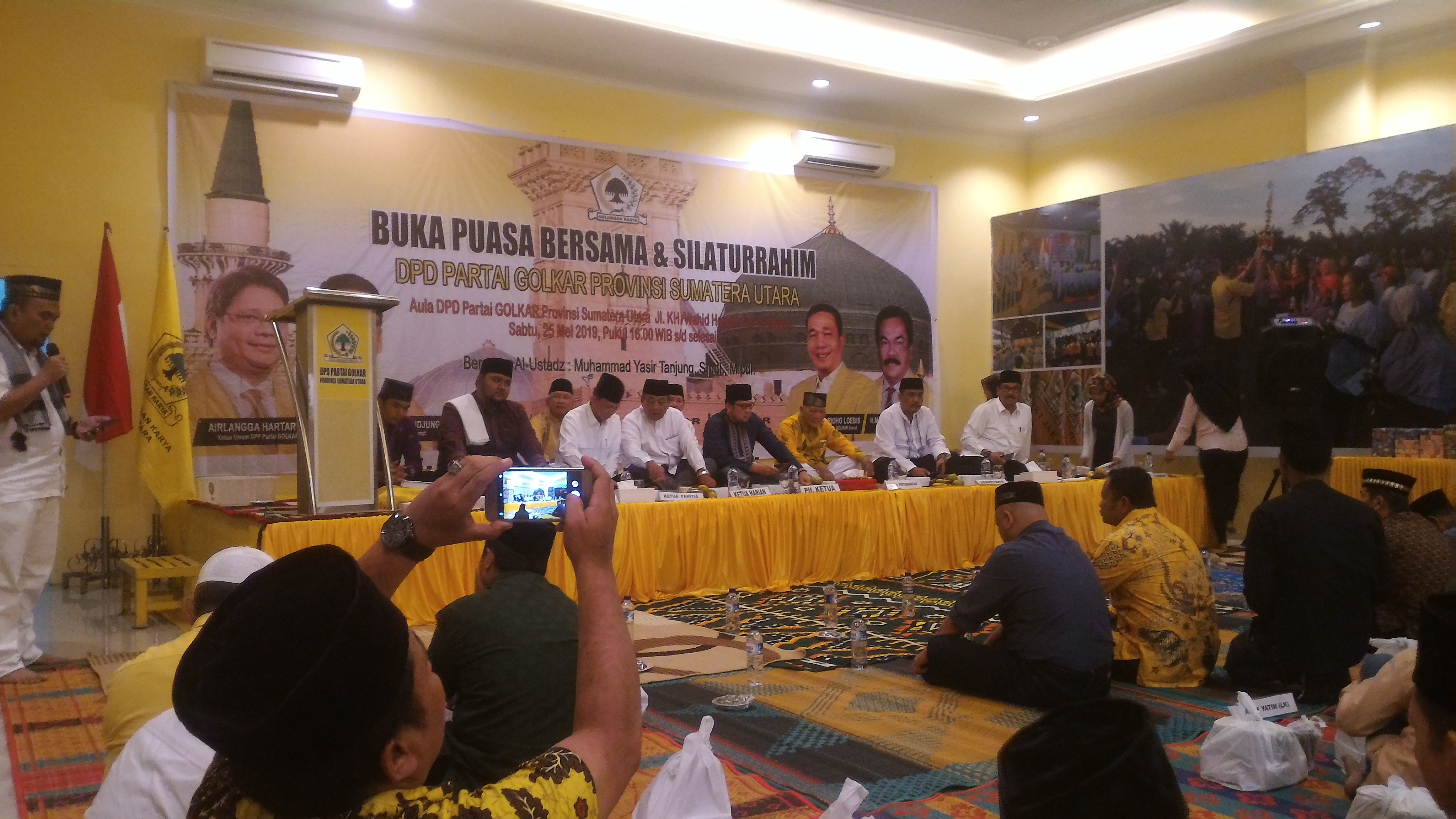 Acara buka puasa bersama dan silatuirahmi DPD Partai Golkar Sumut tersebut diisi tausiyah oleh Al-Ustad Muhammad Yasir Tanjung dan pemberian santunan secara simbolis kepada ratusan anak yatim dan kaum duafa.  (ENC-1)