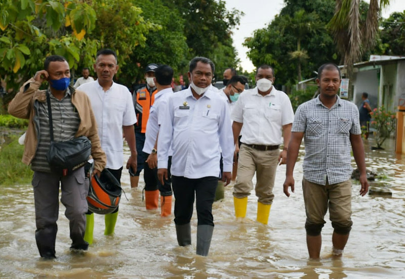 “Karena aliran air sungai terhambat, akhirnya air naik dan meluap ke areal pemukiman warga, terutama yang tinggal di sekitaran bantaran sungai,” jelas Bupati.