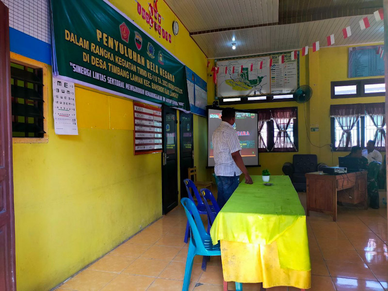 Faisal Badawi, S.Sos  menyampaikan bahwa sosialisasi bela negara bertujuan untuk meningkatkan kecintaan warga Desa Timbang Lawan terhadap Negara Kesatuan Republik Indonesia (NKRI) serta memahami dan menanamkan nilai-nilai Pancasila.