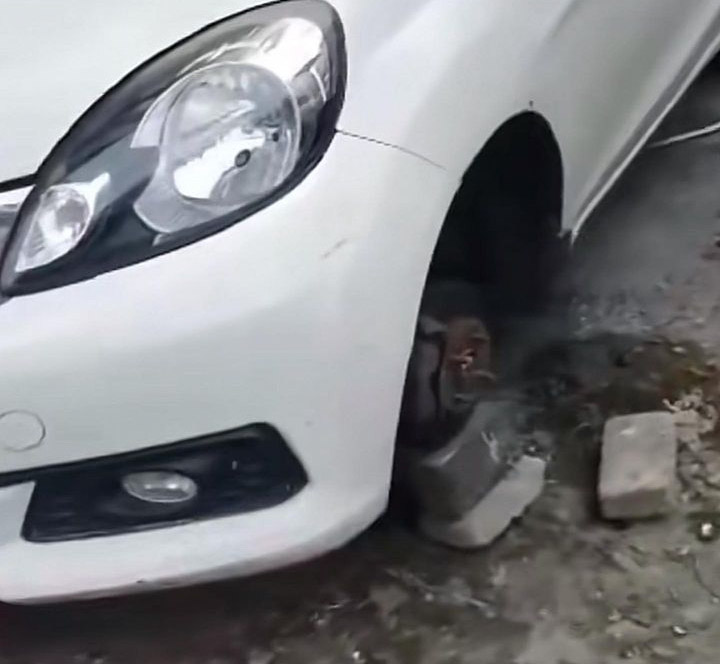 Peristiwa itu terjadi sekitar pukul 05.00 WIB. Kejadian berawal saya korban keluar dari rumah hendak olahraga, dan memarkirkan mobilnya di lokasi. Saat hendak pulang, korban melihat dua ban mobilnya telah hilang. (ENC-Fr)