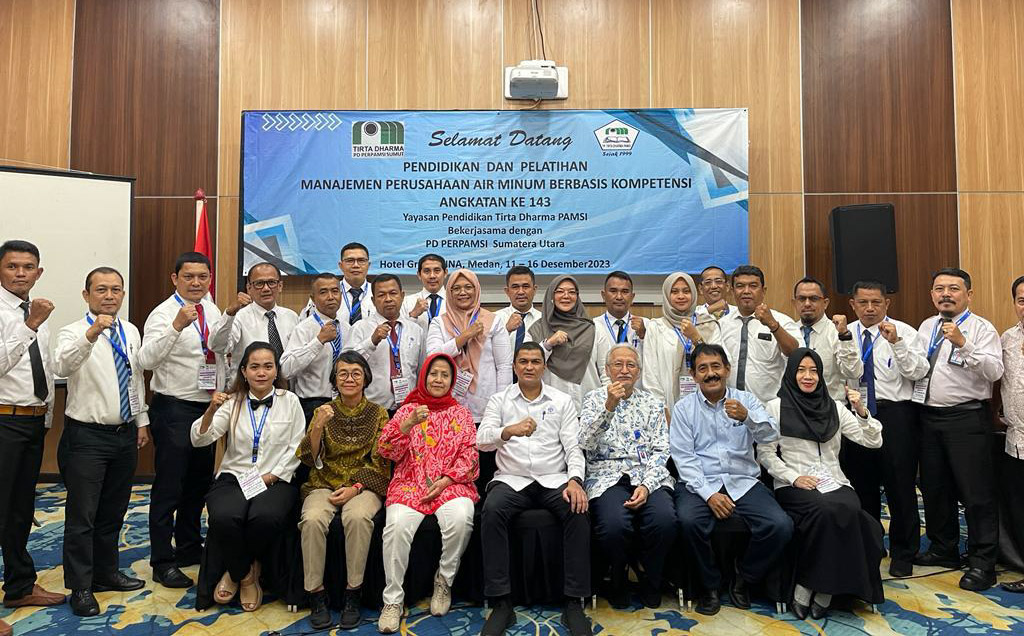 EKSISNEWS.COM, Medan, pendidikan dan pelatihan manajemen perusahaan air minum berbasis kompetensi angkatan ke 143 yang dilaksanakan oleh Persatuan Perusahaan Air Minum Seluruh Indonesia (Perpamsi) Sumatera Utara pada Sabtu (16/12) kemarin berakhir di Hotel Grand Inna Medan.