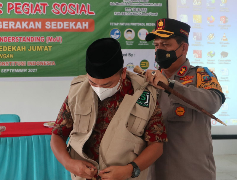 EKSISNEWS.COM, Batubara – Dihadiri Pendiri dan Pembina Komunitas Aedekah Jumat (KSJ) AKBP Ikhwan SH MH dan Ketua Yayasan Rumah Konstitusi Indonesia Amir Hamdani Nasution SH MH melaksanakan penandatanganan kesepakatan kerjasama (MoU) dalam melakukan kegiatan sosial di Aula Bhayangkari Polres Batubara, pada Senin (20/9/2021)