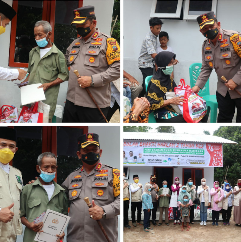 Dengan melakukan donasi sekaligus melakukan pembangunan rumah yang di koordinatori KSJ Simalungun akhirnya berdiri rumuh layak huni yang langsung diresmikan Kapolres Batubara AKBP Ikhwan SH MH beserta istri yang juga Pembina Kartini KSJ Dr. Henny Ikhwan SPd MPd di Desa Teratak Kecamatan Bosar Maligas Kabupaten Simalungun pada Jumat (30/8/2021).