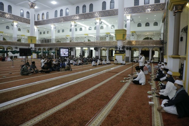 EKSISNEWS.COM, Kisaran – Pemerintah Kabupaten (Pemkab) Asahan, Senin malam (09/08/2021) memperingati Tahun Baru Islam 1443 H yang dirangkai dengan Doa dan Dzikir Kebangsaan di Mesjid Agung H. Achmad Bakrie Kisaran.