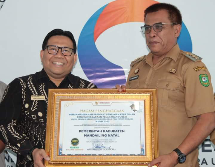 EKSISNEWS.COM,Medan – Pemerintah Kabupaten Mandailing Natal (Madina) meraih peredikat A opini kualitas tertinggi dengan nilai 88,03 hasil penilaian penyelenggaraan pelayanan publik tahun 2023 dari Ombudsman Republik Indonesia perwakilan Sumatera Utara (Sumut) selasa (23/1/2024).