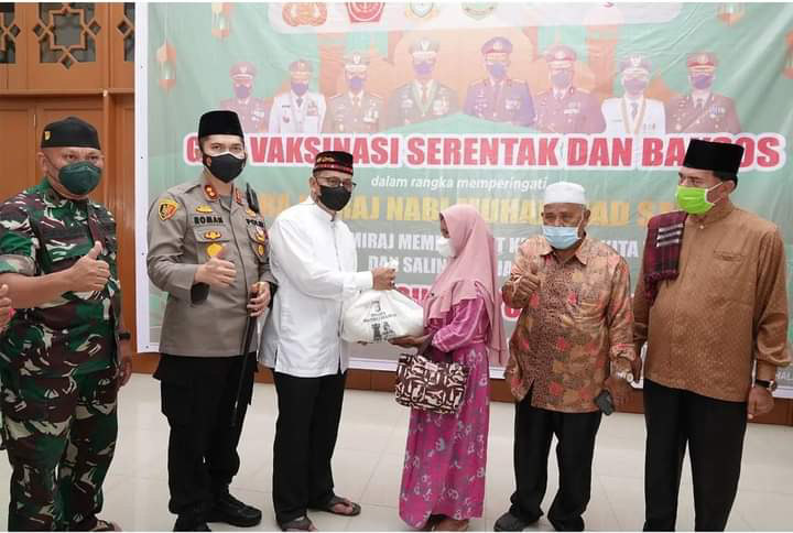 Kapolres Tapanuli Selatan AKBP Roman Smaradhana Elhaj dalam sambutannya mengucapkan terima kasih dan apresiasi kepada masyarakat yang telah meluangkan waktunya untuk hadir pada acara vaksinasi dan pembagian bansos dalam rangka memperingati Isra Mi’raj Nabi Muhammad SAW 1443 H/2022 M.