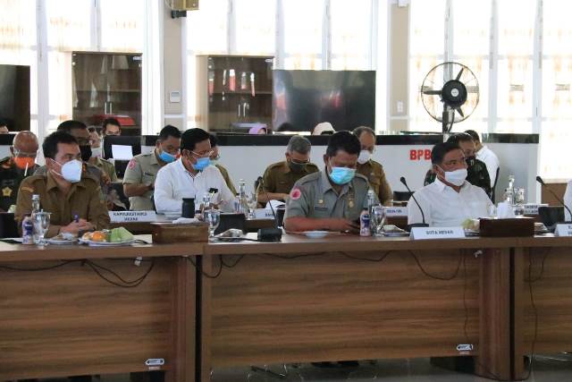 EKSISNEWS.COM, Medan– Pelaksana Tugas (Plt) Wali Kota Medan Ir H Akhyar Nasution MSi diwakili Kepala Badan Penanggulangan Bencana Daerah (BPBD) Kota Medan Arjuna Sembiring menghadiri Rapat Evaluasi Penerapan Tatanan Baru Produktif dan Aman Covid-19 di Kota Medan, Kota Binjai dan Kabupaten Deli Serdang di Rumah Dinas Gubernur Sumut Jalan Jenderal Sudirman No 41 Kecamatan Medan Polonia, Selasa (4/8/2020).