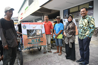 Secara simbolis, tenda becak MTQN XXVII itu diserahkan Sekretaris Daerah Provinsi Sumatera Utara (Sekdaprovsu) Dr Ir Hj R Sabrina MSi kepada 3 orang pengemudi becak di depan Hotel Madani, Medan, Jumat (31/8). Tenda becak yang diberikan tersebut berukuran 3×1,5 meter.
