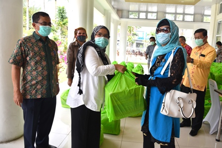 Sembako tersebut diserahkan oleh Sekretaris Daerah Provinsi Sumatera Utara (Sekdaprovsu) R Sabrina didampingi Sekretaris Gugus Tugas Percepatan Penangangan Covid-19 Pemprovsu Arsyad Lubis, Kepala Dinas PMD Aspan Sofian dan Kepala Biro Humas dan Keprotokolan Setdaprov Sumut Hendra Dermawan di Posko Utama Gugus Tugas Jalan Sudirman Nomor 41 Medan, Kamis (9/4/2020).
