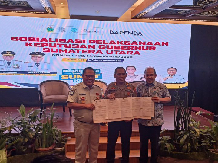 EKSISNEWS.COM, Medan – Pemerintah Provinsi Sumatera Utara melalui Badan Pendapatan Daerah (Bapenda) Provinsi Sumatera Utara melaksanakan Sosialisasi Pelaksanaan Keputusan Gubernur Sumatera Utara nomor 188-44/340/KPTS/2023 yakni pemutihan pajak kenderaan bermotor.