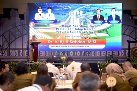 “Saya mendukung terbentuknya forum pembinaan jalan daerah di Sumut dimana anggota forum ini adalah para OPD di Sumut. Dengan adanya forum ini diharapkan tercipta pembinaan jalan sesuai undang-undang serta koordinasi dan sinergitas yang kemudian membawa banyak manfaat bagi masyarakat Sumut,” kata Sekretaris Daerah Provinsi Sumatera Utara (Sekdaprovsu) R Sabrina saat membuka Rapat Koordinasi (Rakor) Pembinaan Jalan Daerah Provinsi Sumut Tahun 2019 sekaligus Pengukuhan Kepengurusan Forum Komunikasi Pembinaan Jalan Daerah Provinsi Sumut 2019-2020, di Santika Premiere Dyandra Hotel & Convention, Jalan Kapten Maulana Lubis, Medan, Selasa (26/11/2019).