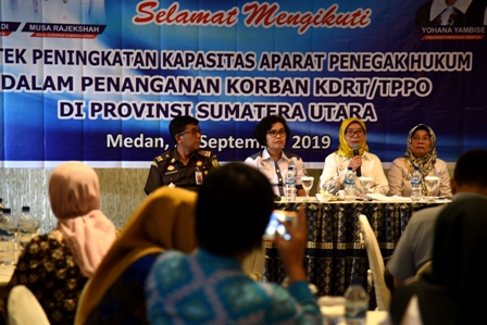“Kemudian, juga untuk meningkatkan kualitas pelayanan hukum oleh aparat penegak hukum atau sistem peradilan pidana terpadu dalam penanganan kasus kekerasan dan korban tindak pidana perdagangan orang terhadap perempuan melalui penguatan dan keterampilan dalam penegakan hukum yang responsif gender dan mementingkan anak,” jelasnya.