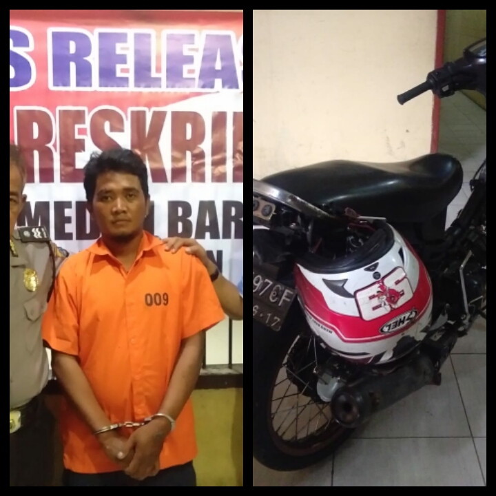 Alhasil berhasil tersangka yang merasa gugup langsung terjatuh dan tanpa membuang buang waktu petugas pun langsung menangkap tersangka yang kemudian bersama barang bukti 1 unit sepeda motor yang dikendarai tersangka tersebut bersama helm merk Shel turut serta di amankan petugas Pegasus ke Mako Polsek Medan Baru, sementara rekan tersangka berhasil kabur.