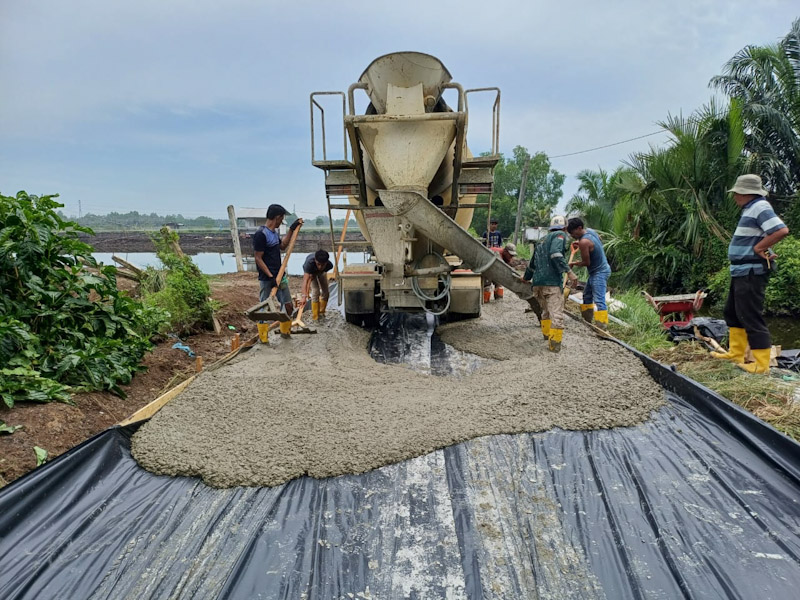Pengecoran/rigid beton ini sendiri memiliki kelebaran jalan dengan ukuran 4 meter, serta panjangnya pengerjaan dengan jarak 600 meter.
