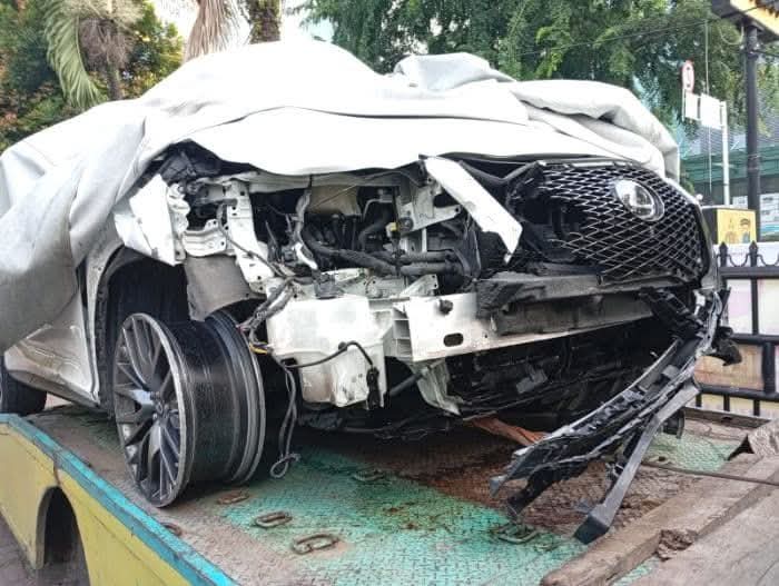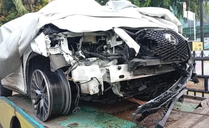 Tiba di lokasi, mobil Lexus putih tersebut bertabrakan dengan satu unit becak barang yang dikendarai pria yang belum diketahui identitasnya. Akibatnya, pengendara becak tewas di lokasi sementara mobil Lexus mengalami rusak parah.