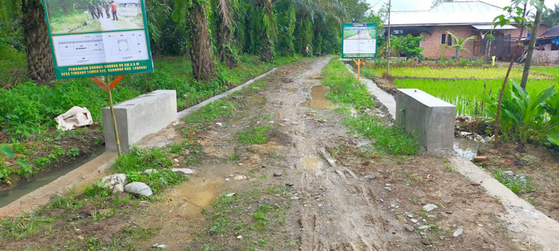 Dan untuk pembuatan gorong-gorong 5 unit ukuran 80 cm x 5 m capai 93 % serta pembuatan Pos Kamling 2 unit ukuran 2 M x 3 M Desa Timbang Lawan Kec. Bahorok Kab. Langkat semuanya capai 90 %.