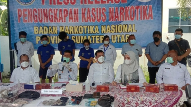 “Tersangka Dinda dan Faisal kami tangkap setelah melakukan pengembangan atas penangkapan Jon saat penggerebekan kemarin,” kata Toga saat memaparkan kasus itu di Kantor BNN Provinsi Sumut, Jalan Balai POM, Desa Medan Estate, Kecamatan Percut Seituan, Deliserdang, Sumut, Senin (11/10/2021).