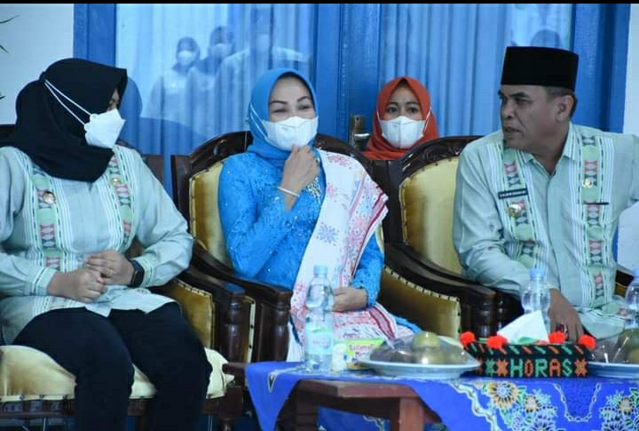 EKSISNEWS.COM, Panyabungan – Ny. Eli Mahrani HM Ja’far Sukhairi Nasution mengukuhkan Pengurus Dewan Kerajinan Nasional Daerah (Dekranasda) Kabupaten Mandailing Natal (Madina) priode 2021-2024 di Aula Kantor Bupati Madina, Desa Parbangunan, Kecamatan Panyabungan, Kamis (10/2/2022).