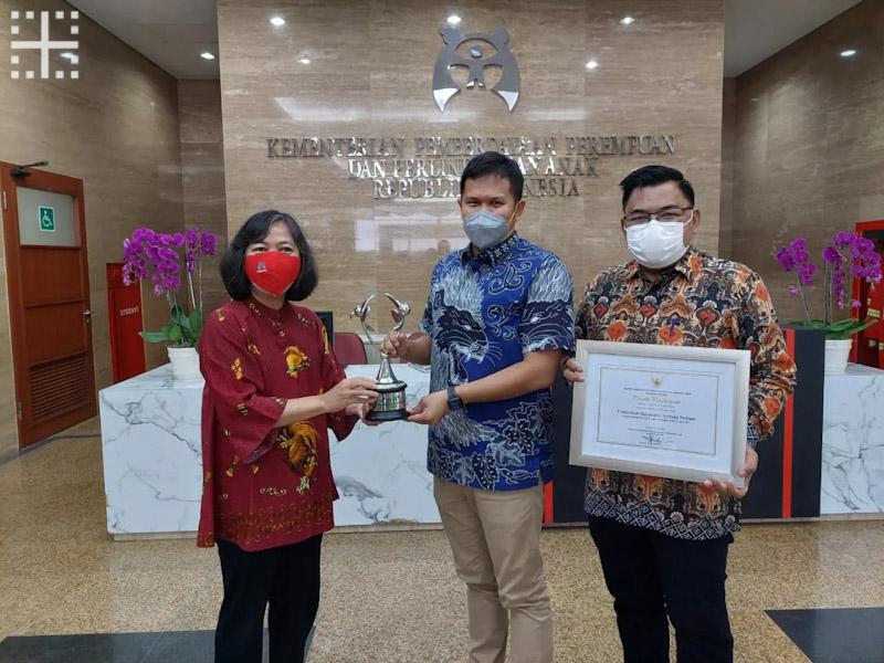 Kementerian Pemberdayaan Perempuan dan Perlindungan Anak (PPPA) melalui Deputi Bidang Perlindungan Hak Anak Kementrian PPPA, Agustina Erni, menyerahkan piala dan piagam penghargaan Kabupaten Layak Anak (KLA) level Madya yang diterima oleh Wakil Bupati (Wabup) Sergai H. Adlin Umar Yusri Tambunan, ST, MSP, Kamis (4/8/2022). Apresiasi ini diserahkan di kantor Kementerian PPPA, Jl. Medan Merdeka Barat No.15, RT 2/RW 3, Gambir, Kecamatan Gambir, Jakarta Pusat.