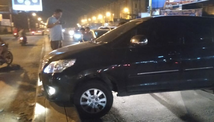 Sebuah mobil kijang Innova yang melintas dari Jalan Selamat Kataren menuju ke Jalan Rumah Sakit Haji tiba-tiba menabrak pembatas jalan yang baru dibuat tersebut pada Kamis (26/12/2019) malam