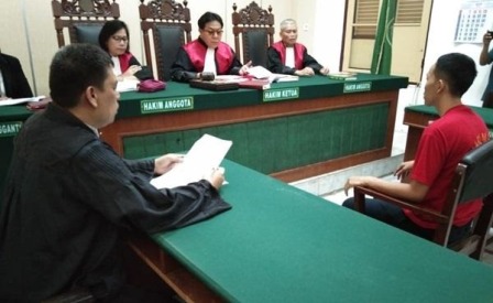 MEDAN, Eksisnews.com – Andi Kusmana (25) warga Ciamis, Jawa Barat, tampak pasrah saat majelis hakim Pengadilan Negeri Medan menghukumnya dengan pidana penjara selama 1 tahun 2 bulan penjara. Pemuda ini dinyatakan bersalah menyebarkan video hoax terkait pencoblosan surat suara oleh KPU Medan.