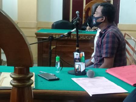 EKSISNEWS.COM, Medan – Jumadi alias Jum (19) terdakwa kasus perantara jual-beli sabu seberat 600 gram jalani sidang perdana yang digelar secara video conference di ruang Cakra 3 Pengadilan Negeri Medan, Selasa (10/11/2020).