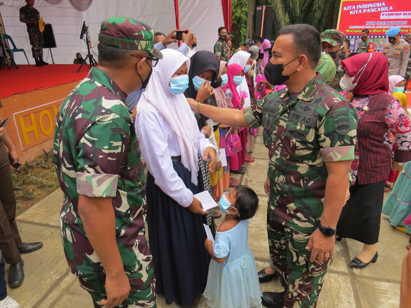 EKSISNEWS.COM, Labuhanbatu– Momentum peresmian kampung Pancasila Kodim 0209/LB dijadikan sebagai sarana berbagi kepada 30 orang anak yatim dan 50 orang kaum dhuafa, menjadi salah satu contoh penjabaran pengamalan Pancasila yang sesungguhnya ditengah kesulitan masyarakat saat ini.